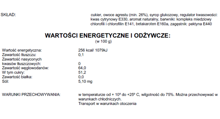 Pasta o smaku owocu agrestu.